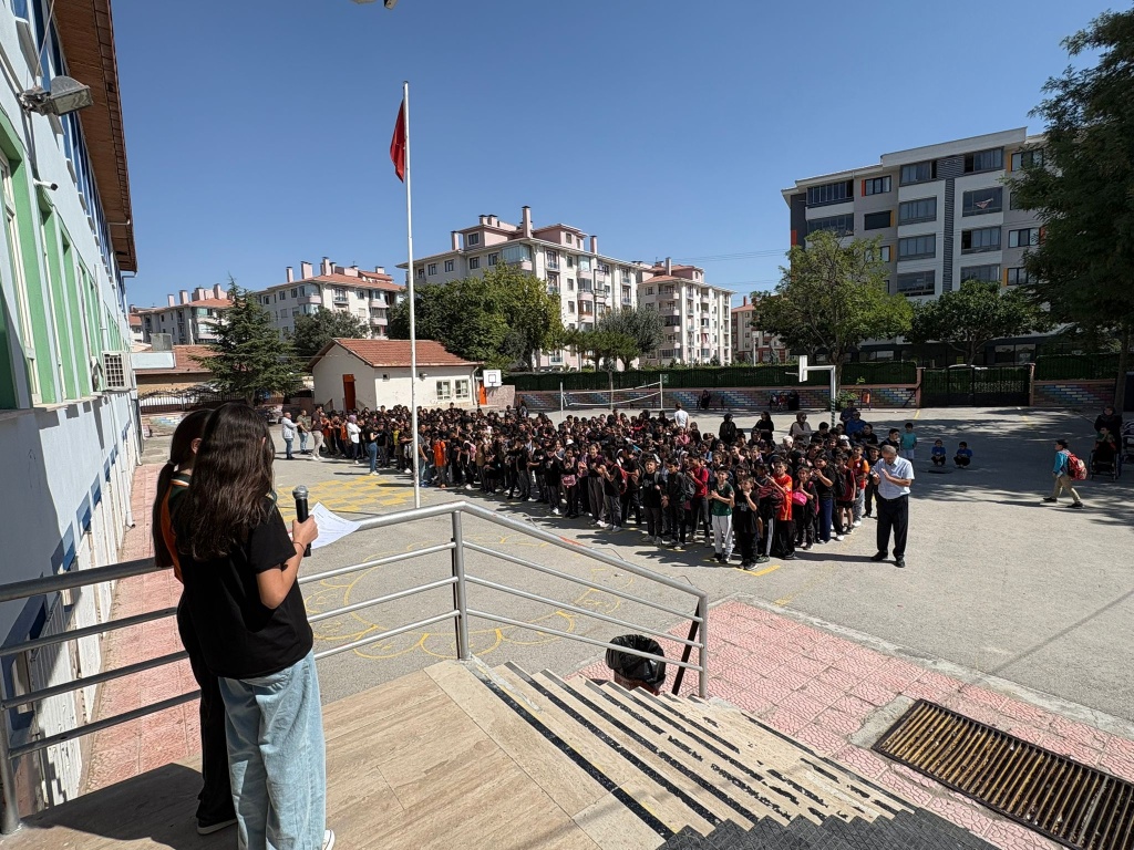 2025 – 2026 Eğitim Öğretim Yılı’na “Merhaba” diyerek başlayan okulumuzda ilköğretim haftası kutlamaları coşkuyla kutlandı. Okul bahçesinde düzenlenen törene okula gelen öğrenciler ilk günün heyecanını yaşadı. İlk defa törene katılan anasınıfı ve birinci sınıf öğrencileri heyecanlarını gizleyemediler.